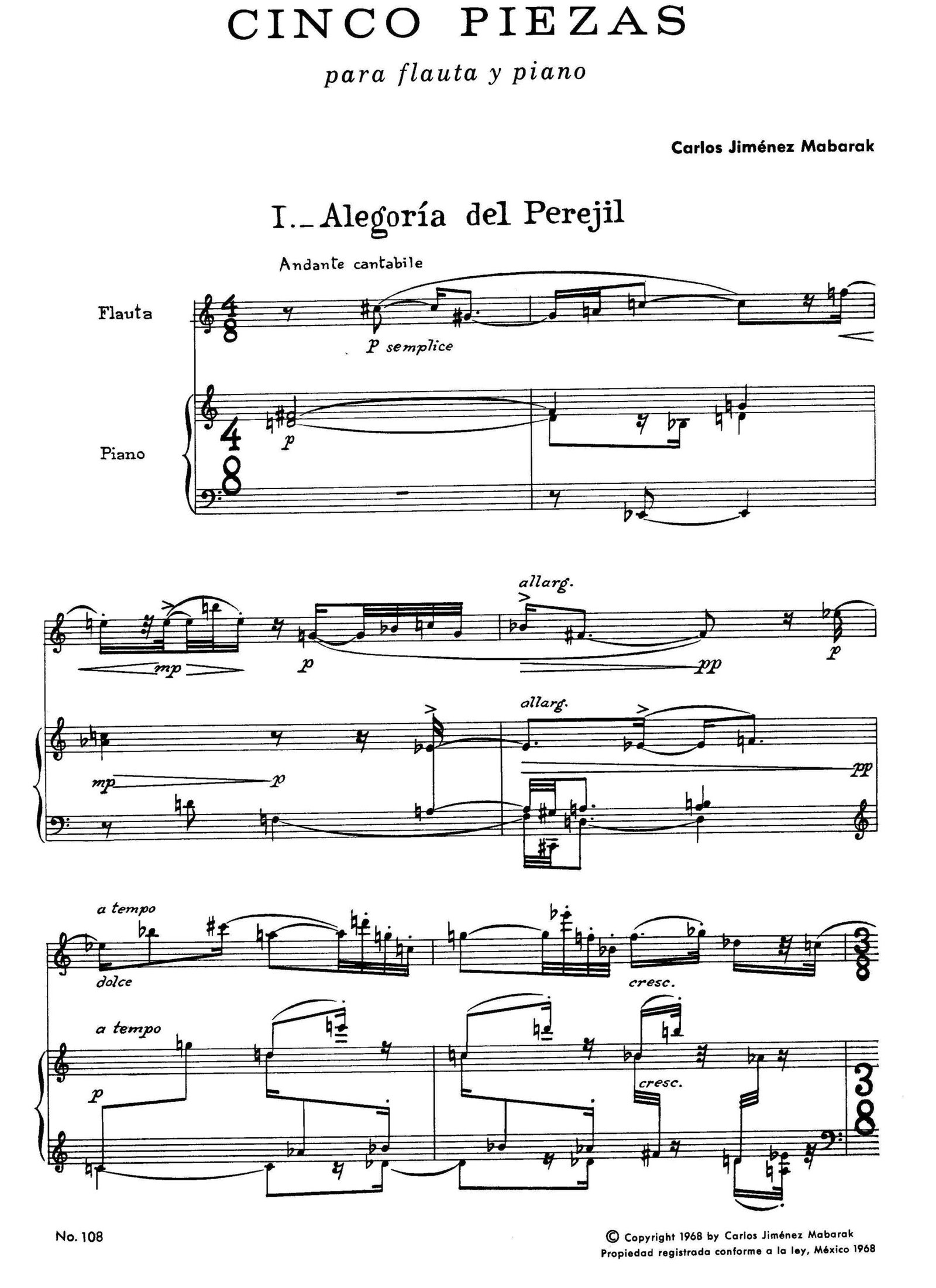 Cinco Piezas [flauta y piano] | Carlos Jiménez Mabarak